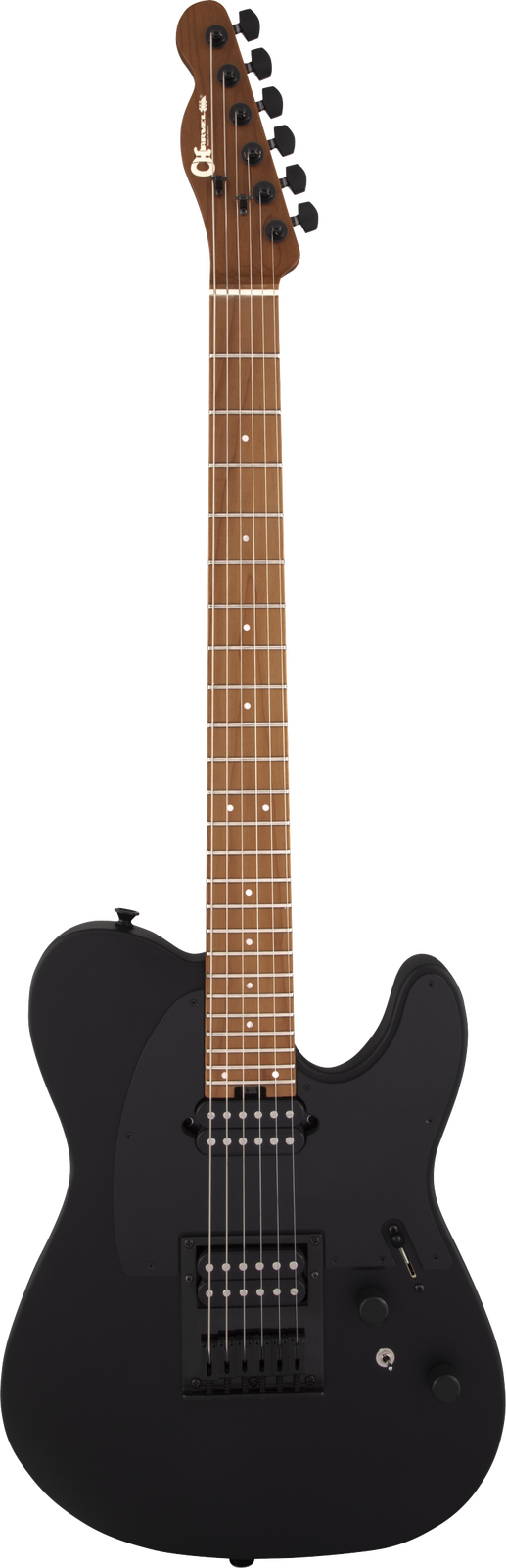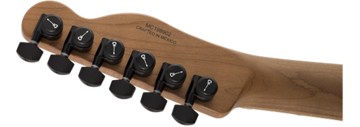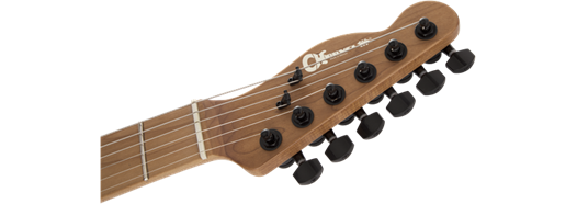 Charvel-branded sealed die-cast locking tuners and standard strap buttons