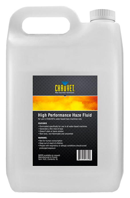 HJ5 is a premium water-based haze machine fluid designed to give your smoke machine the best output and performance. Specially formulated to provide an ultra thin haze from your haze machine, without any odours, residue or stains. Perfect for use with your Chauvet DJ Hurricane Haze machine, or other water based haze machine.