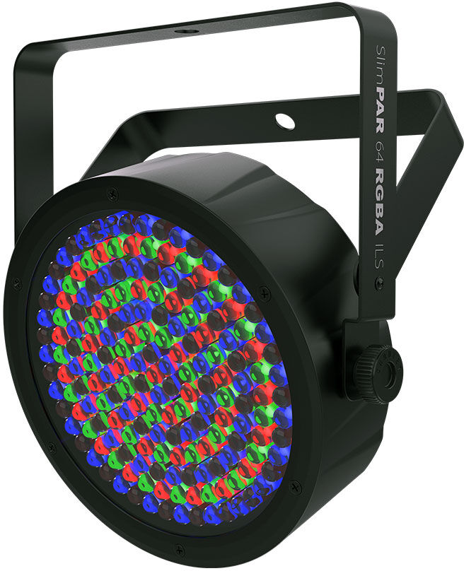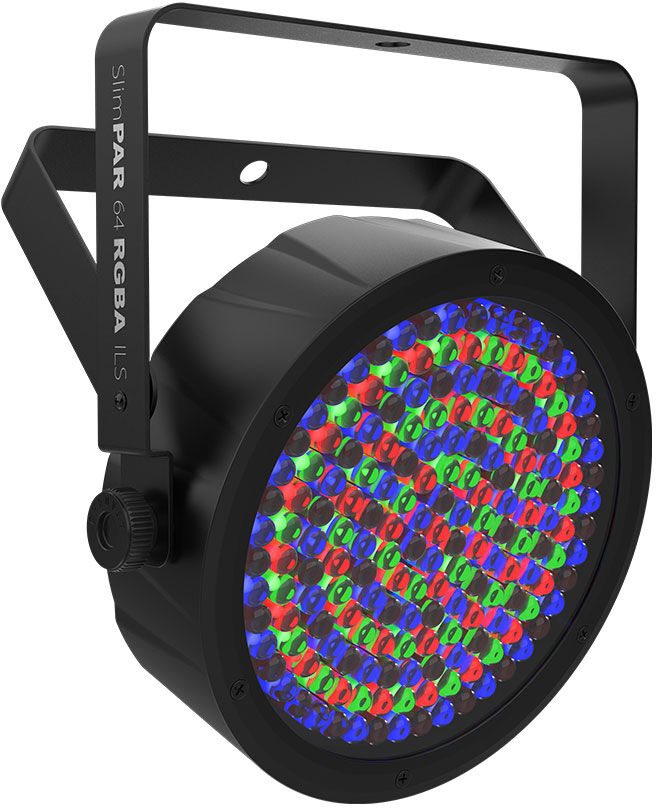 SlimPar 64 RGBA ILS is a compact wash light with 180quad-color (Red, Green, Blue, and Amber) LEDs. ILS compatibility makes creating coordinated light shows with this unit and different fixture types as easy as 1, 2, 3. Generate a broad spectrum of colors and achieve natural-looking color temperatures thanks to punchy amber LEDs. Its multiple user-configurable settings and power linking capabilities make this fixture ideal for a range of wash lighting needs.