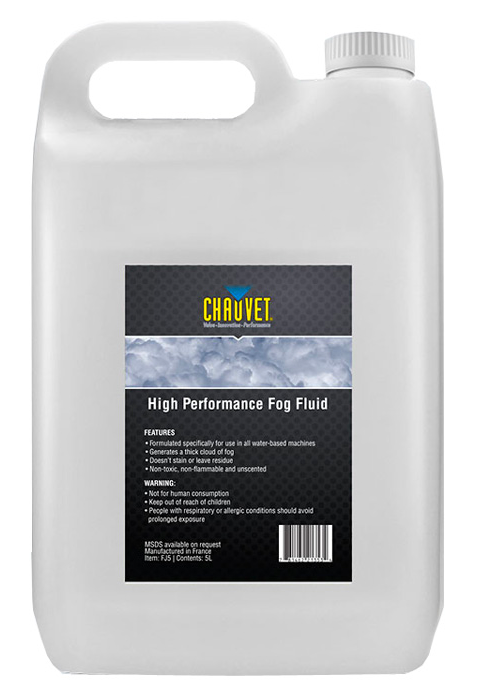 FF5 is a premium smoke machine fluid designed to give your smoke machine the best output and performance. Specially formulated to provide a dense white fog from your smoke machine, without any off putting odours or residue. Perfect for use with your Chauvet DJ Hurricane smoke machine, or other water based smoke machine.