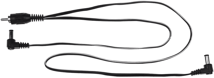The Split Flex cable makes it possible to connect two pedals to the power supply using one outlet only. Two cables in lengths 30 and 50cm are connected to the plug on the power supply side. On the other end they are terminated with 5,5/2,1mm center negative angled DC plugs which is the most common type (also called the BOSS standard). Both pedals connected to the power supply will be powered with the same voltage and will not be isolated from each other.