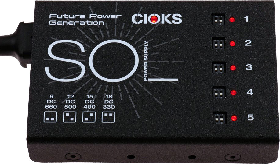 SOL is the ultimate solution for bringing life to a small to medium-sized pedalboard setup, especially if you are using power-hungry pedals. SOL is the smallest mains-powered switch-mode power supply we make at CIOKS (no wall-warts here) and the no-frills design plus massive power will leave you free to focus on your creative spark.