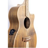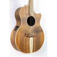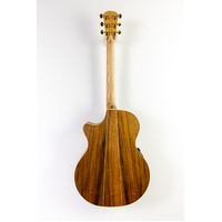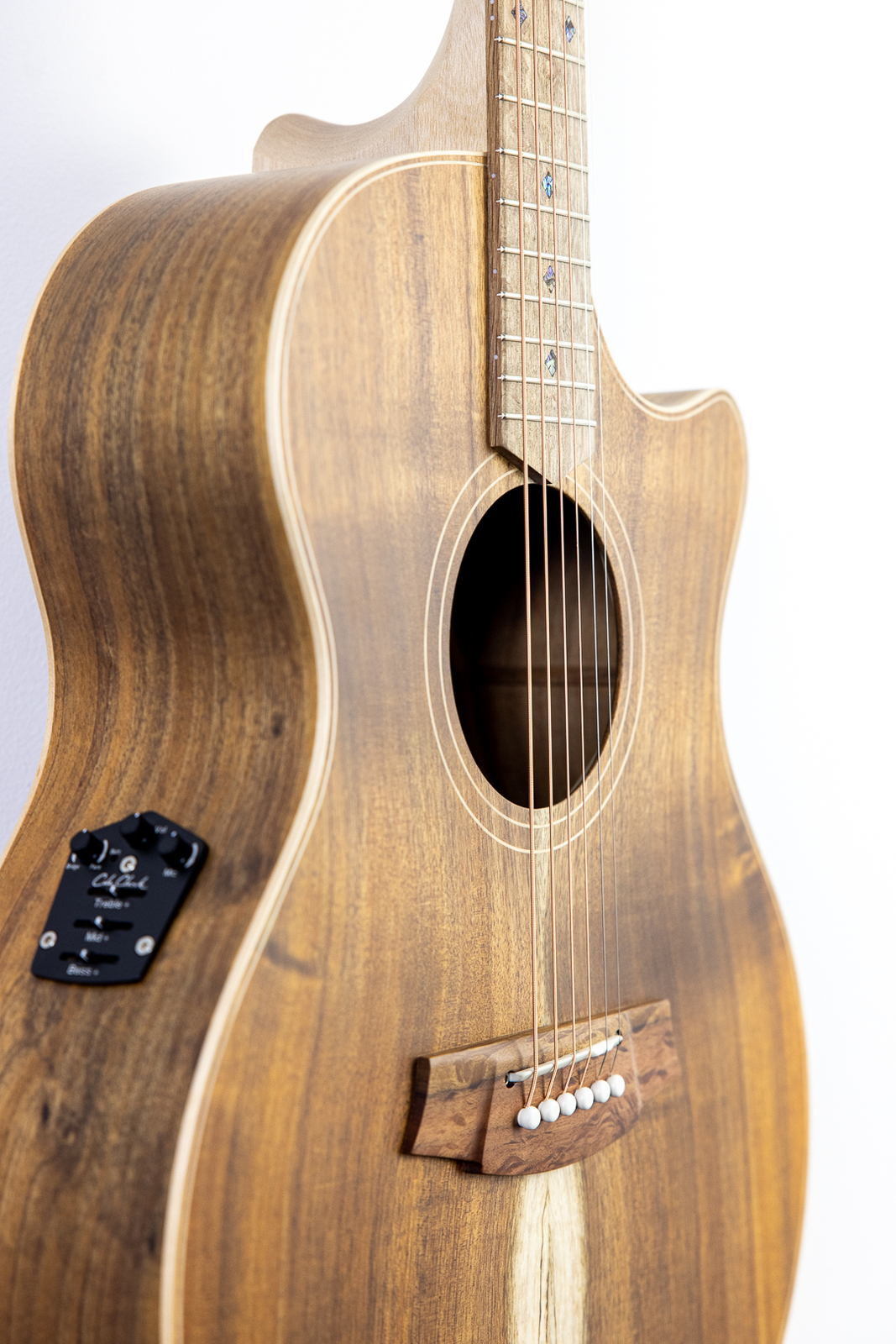 All solid timber cutaway Grand Auditorium with internally carved top and back