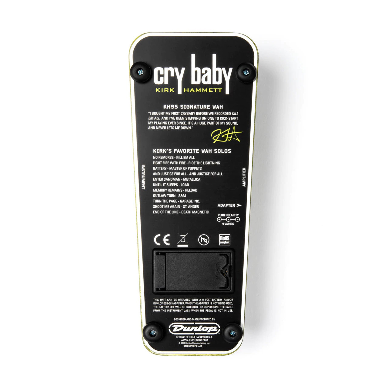 Now you can command the same killer wah tone as Kirk with the new Kirk Hammett Cry Baby Wah. Developed in close collaboration with the metal guitar icon himself, it has been meticulously tuned and tweaked to deliver the wah sound that revolutionized metal solos. This is the legendary tone that Kirk dials in on tour using his Cry Baby Rack Wah. Dunlop's engineers took Kirk's EQ, volume and tone settings—reflecting decades of blazing Cry Baby riffology—and reproduced them with exacting precision. This pedal is exceptionally even in response as you move from heel to toe, with a thick top end and full dynamic range. Dare to step into the footprint of a giant. Own a piece of the legend: the Kirk Hammett Signature Wah from Dunlop.