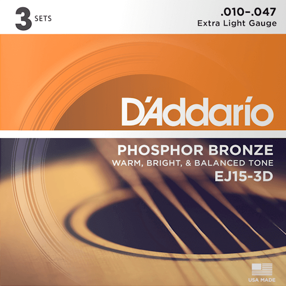 D'Addario's lightest gauge of acoustic strings, EJ15s are ideal for beginners or any player that prefers a softer tone and easy bending.