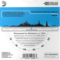 Pioneered in 1974 and still revered today, Phosphor Bronze has become synonymous with warm, well-balanced acoustic tone. D'Addario Phosphor Bronze strings are precision wound with corrosion-resistant phosphor bronze onto a carefully drawn, hexagonally shaped, high carbon steel core. The result is long-lasting, bright sounding tone with excellent intonation.