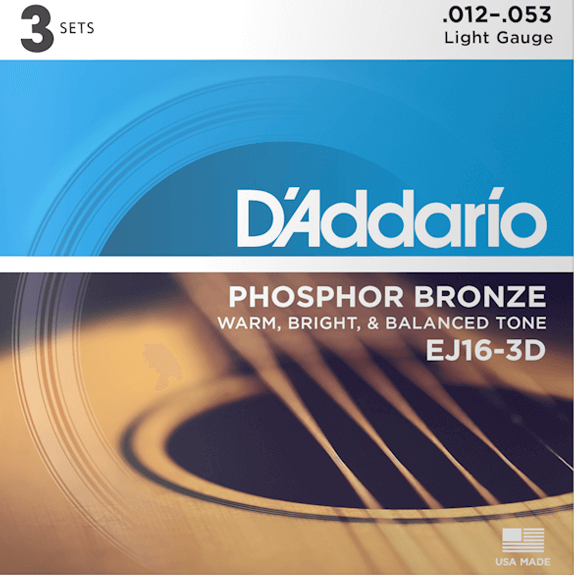 D'Addario was the first to use Phosphor Bronze in acoustic guitar strings back in 1974. Today, Phosphor Bronze is played throughout the world and considered to be the standard in acoustic strings, thanks to its beautiful sonic balance and tonal warmth. Our pioneering Phosphor Bronze acoustic guitar strings are precision wound with phosphor bronze wrap wire over a high-carbon steel core, providing tonal versatility suitable for all acoustic styles and musical genres. 12-53 Light gauge strings are our most popular acoustic gauge, providing a nice balance of playability and tone.