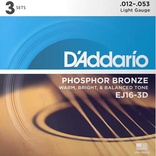 D'Addario EJ16 Phosphor Bronze .012 - .053 3 pack