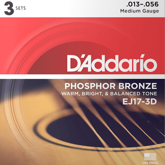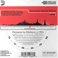 Phosphor Bronze was introduced to string making by D'Addario in 1974 and has become synonymous with warm, bright, and well balanced acoustic tone. D'Addario Phosphor Bronze strings are precision wound with corrosion resistant phosphor bronze onto a carefully drawn, hexagonally shaped, high carbon steel core. The result is long lasting, bright sounding tone with excellent intonation.