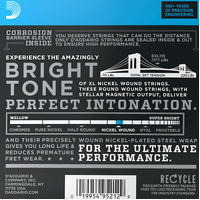 XL Nickel Wound, D'Addario's most popular electric guitar strings, are precision wound with nickelplated steel onto a carefully drawn, hexagonally shaped, high carbon steel core. The result, strings with long lasting, distinctive bright tone and excellent intonation, is ideal for the widest variety of guitars and musical styles.