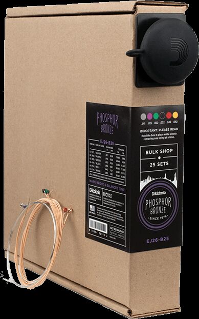 D'Addario was the first to use Phosphor Bronze in acoustic guitar strings back in 1974. Today, Phosphor Bronze is played throughout the world and considered to be the standard in acoustic strings, thanks to its beautiful sonic balance and tonal warmth. Our pioneering Phosphor Bronze acoustic guitar strings are precision wound with phosphor bronze wrap wire over a high-carbon steel core, providing tonal versatility suitable for all acoustic styles and musical genres. These 11-52 Custom Light gauge strings have slightly more volume and projection than Extra Light, while still being easy to play.