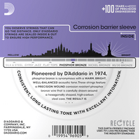 - D’Addario Phosphor Bronze acoustic guitar strings come with a code on the recyclable VCI bag, which you can register to earn Players Circle points.