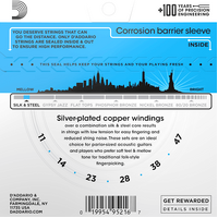 D'Addario Silk & Steel strings couple silver-plated copper wrap wire with silk for easy fingering and a mellow tone. They are excellent for smaller body acoustic guitars and preferred by many folk players.