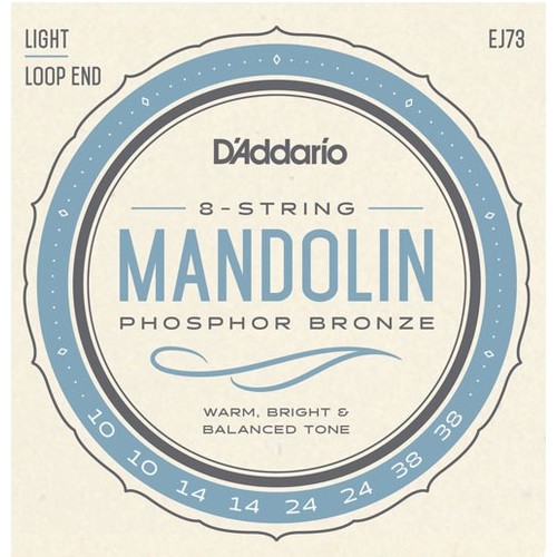 EJ73, D'Addario's most popular light gauge mandolin set, delivers warm and bright phosphor bronze tone with just the right amount of tension for easy playability and projection. Loopend construction for universal fit.