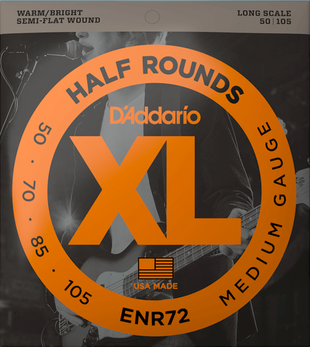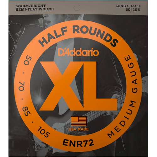Coined the “third type of string,” XL Half Rounds bass strings are an excellent medium between round wound and flat wound strings. Half Rounds have a smoother feel than round wound strings, but a fuller tone than strings that are flat wound. Made with a high carbon steel core and pure nickel wrap wire, they’re finished with a precision grinding process to provide a smooth feel and reduced finger noise, with tone that's comparable to round wound bass strings. This 50-105 Medium set has a higher tension, affording increased low-end response and output.
