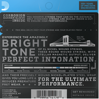 XL Nickel Wound, D'Addario's most popular electric guitar strings, are precision wound with nickelplated steel onto a carefully drawn, hexagonally shaped, high carbon steel core. The result, strings with long lasting, distinctive bright tone and excellent intonation, is ideal for the widest variety of guitars and musical styles.