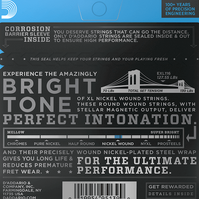 XL Nickel Wound, D'Addario's most popular electric guitar strings, are precision wound with nickelplated steel onto a carefully drawn, hexagonally shaped, high carbon steel core. The result, strings with long lasting, distinctive bright tone and excellent intonation, is ideal for the widest variety of guitars and musical styles.