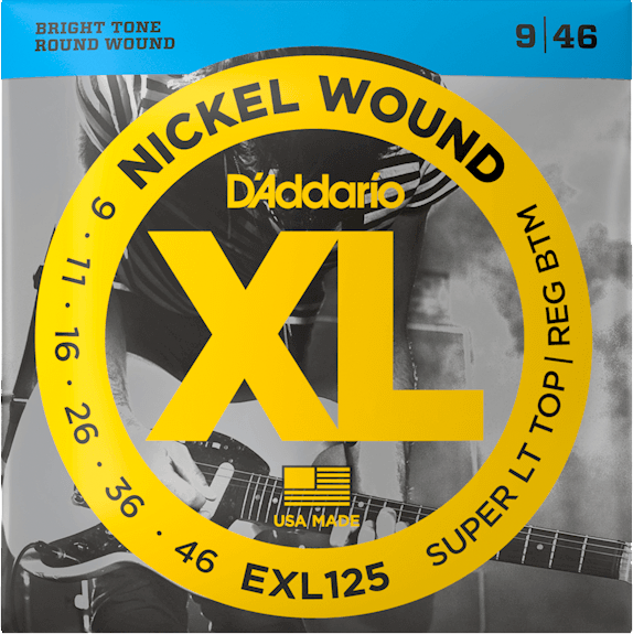 XL Nickel Wound electric guitar strings are the standard against which all other strings are measured. Our best-belling electric set, XL Nickel has been revered by players everywhere since 1974. Made with a high carbon steel core and nickel-plated steel wrap wire, XL Nickel strings have a bright, versatile tone, ideal for a wide variety of musical styles. 09-46 Super Light Top/Regular Bottom gauge sets have more low-end tone, while staying flexible for bends.