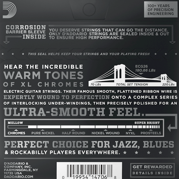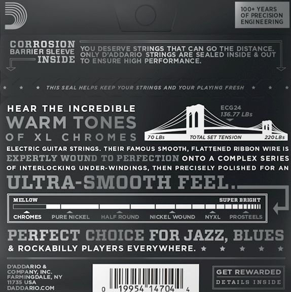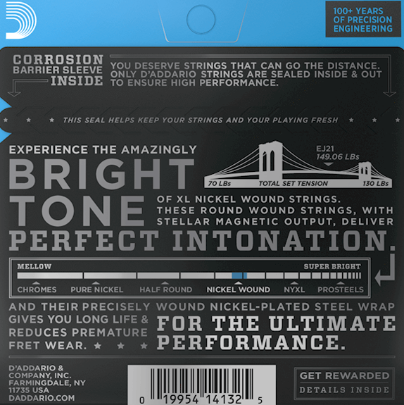 Like all D’Addario electric guitar strings, XL Nickel are made with our proprietary Hex-Core, ensuring perfect intonation, consistent feel, and reliable durability.