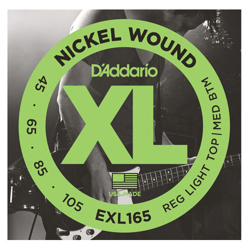 EXL165 is a popular D'Addario hybrid bass set combining the high strings from an EXL170 (.45 and .65) with the low strings from an EXL160 (.85 and .105). This set is optimal for players looking for the ideal combination of a comfortable playing tension with distinctive brightness and booming, tight lows. Fits basses with a string scale length of up to 36 1/4 inches.