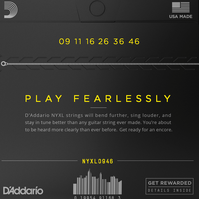 NYXLs will bend farther, sing louder, and stay in tune better than any string you’ve played before. As our premium uncoated electric string, NYXLs offer higher break strength, enhanced tuning stability, and accentuated mid-range frequency response, providing more presence and crunch to cut through the mix. Made with a NY Steel core, premium nickel-plated steel wrap wire, and Fusion Twist technology, NYXL electric guitar strings are tough enough and versatile enough to handle anything. 09-46 Super Light Top/Reg Bottom gauge strings have more low-end tone, while staying flexible for bends