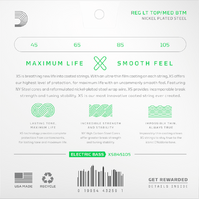 NY Steel core and re-formulated nickel-plated steel wrap wire mean XS Bass strings have superior strength and the longest-lifespan on the market.