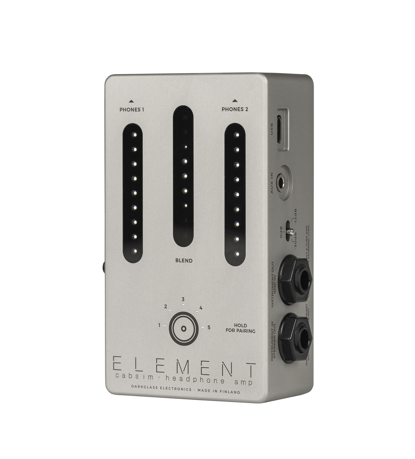 One comprehensive device, that out of the box offers a bank of 5 cabinet simulations, and the ability to change them through the Darkglass Suite, Bluetooth technology to listen to backing tracks while playing, rehearsing, or studying. Two headphone outputs to allow interaction among musicians. XLR output to connect the Element to your audio interface or PA system. With a uniquely innovative approach, the Element provides in one device an immensely practical tool to empower modern musicians.