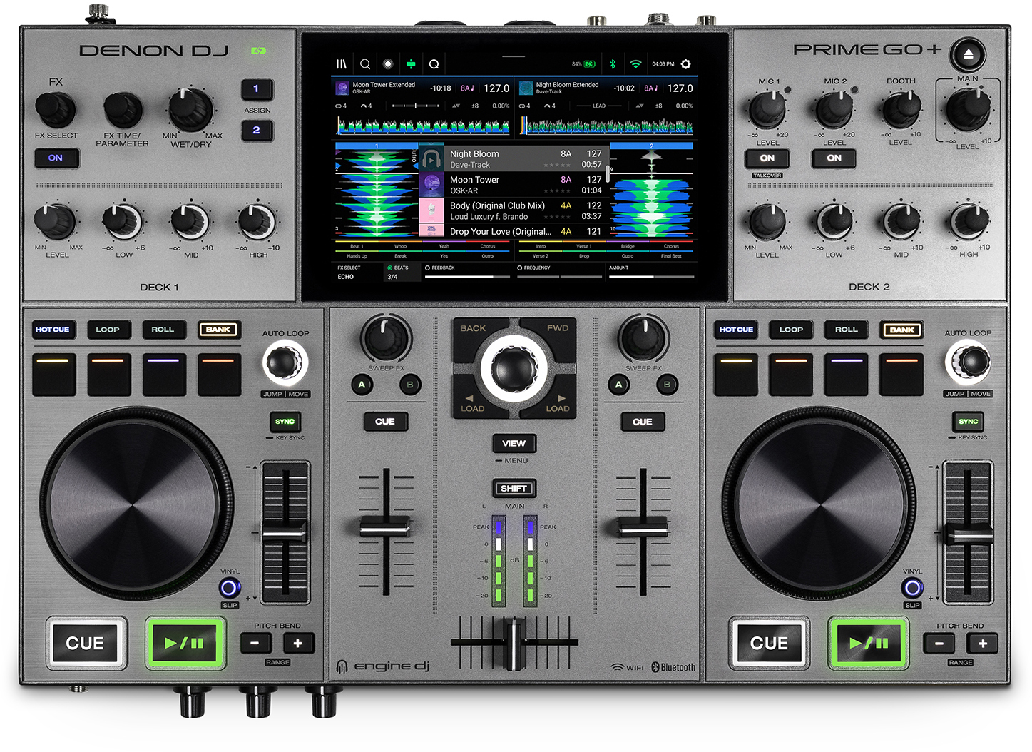Engine DJ standalone operating system for laptop-free performances and cutting-edge features like embedded Sampler, onboard song analysis, Touch FX, wireless updates, and more