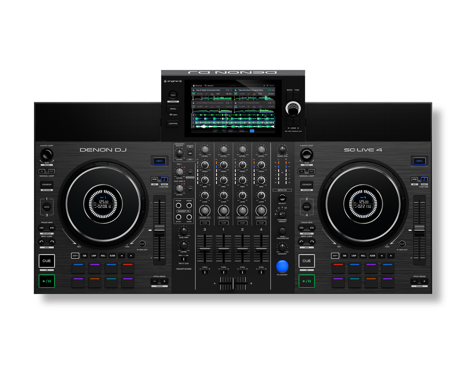 The SC LIVE 4 is powered by Engine DJ, the same leading standalone DJ operating system that fuels laptop-free performances on the biggest stages and DJ booths across the globe. This seamless hardware and software integration intuitively places performance essentials in the perfect place for inspirational mixes and live shows.