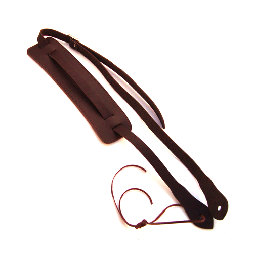 The DSL Ukulele Strap has been designed from the ground-up to be the most comfortable, flexible and durable ukulele strap ever made. Much consideration was given to the typically petite size and unique playing technique of the ukulele. Each strap uses a classic suede backed shoulder pad with special width tails. The rear tail attaches to the lower body strap pin, while the front tail attaches either to the upper body strap pin or ties behind the nut using genuine kangaroo leather ties.