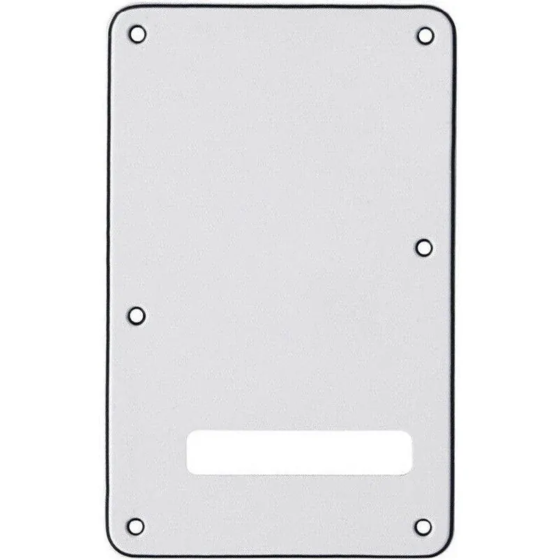 Strat® modern style tremolo back plate. Single large string slot. White/black/white.