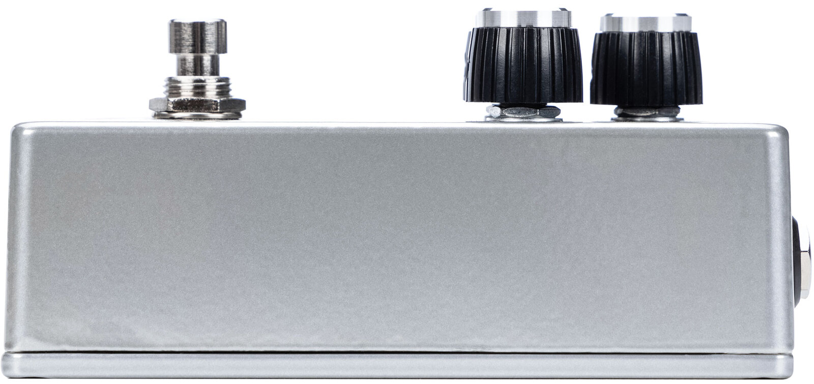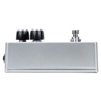 The Tone control is atypical for this type of distortion and can drastically change the distortion’s character in conjunction with the Sustain setting. Bass frequencies are boosted clockwise while treble frequencies are boosted when turned counterclockwise. The treble side can go from piercing highs to an aggressive mid-range grind. As the Tone is turned clockwise, the mids become less present, highs are tamed, and a massive, thundering low-end comes to the forefront.