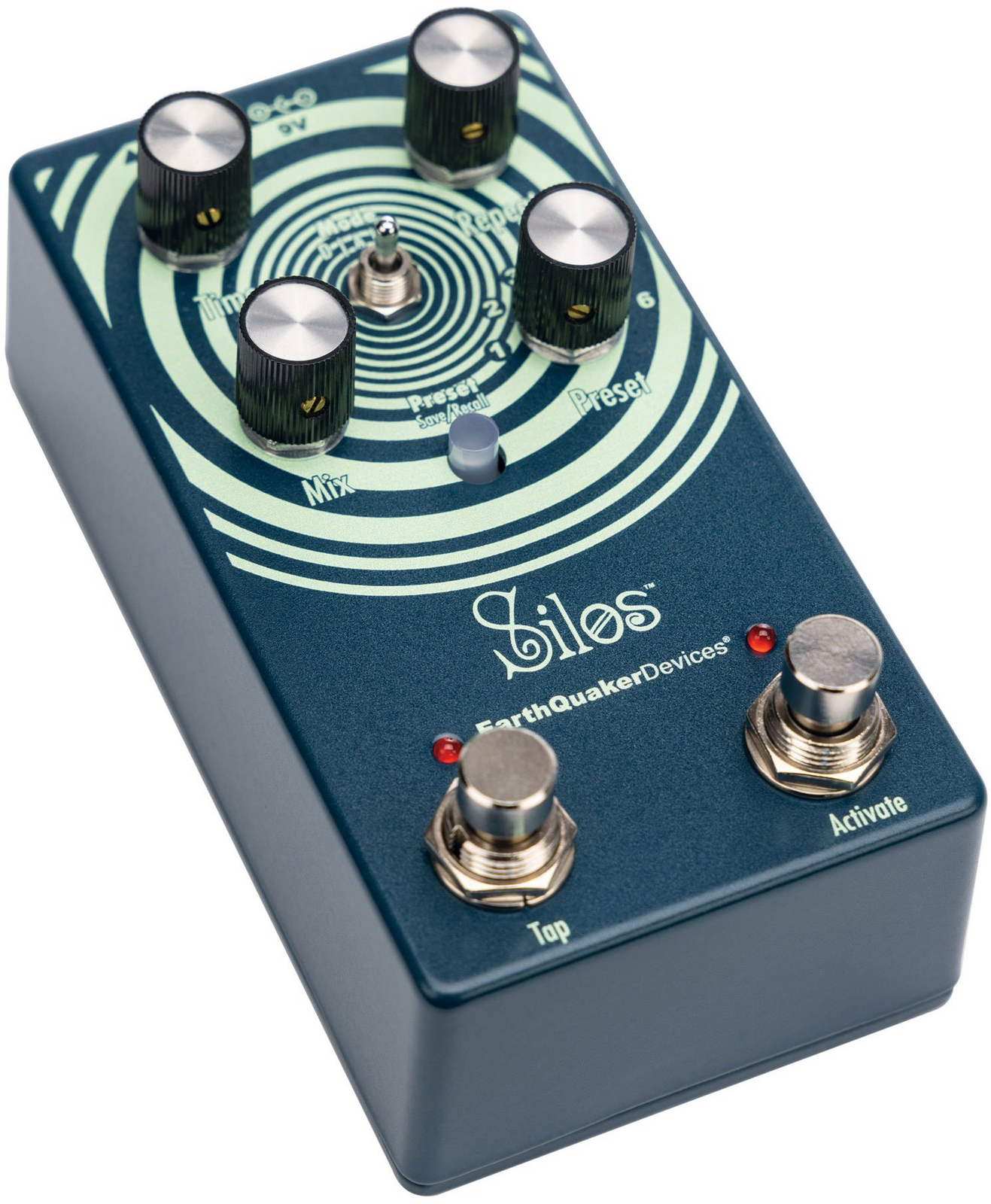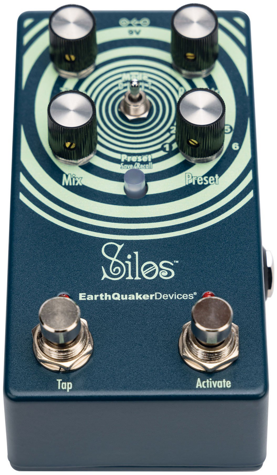 Silos has six available preset slots for you to save and recall your favorite settings. The settings for each of the three controls, the mode switch and the expression jack assignment can be saved and recalled in any of the slots.