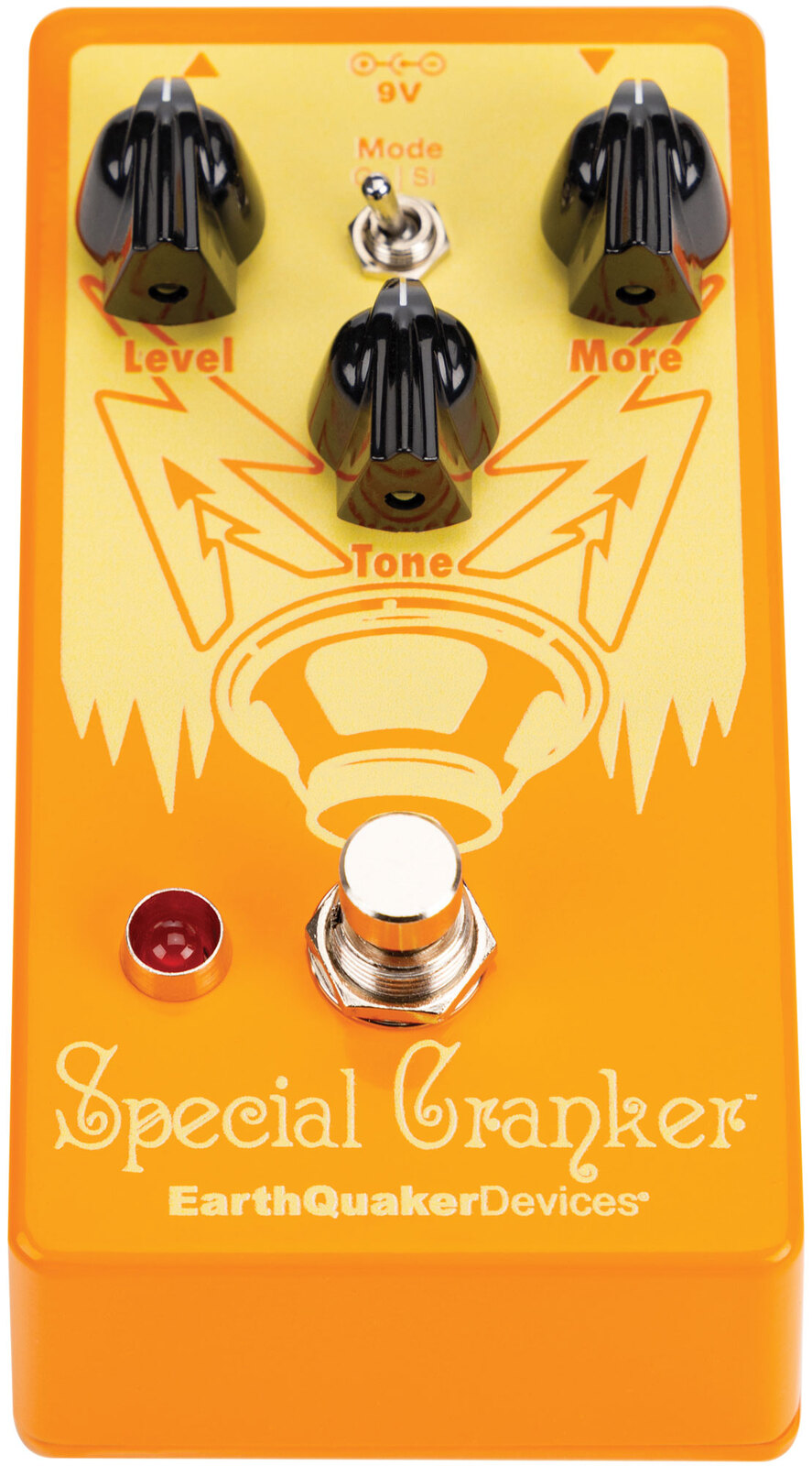The Special Cranker picks up where our beloved Speaker Cranker left off. It has the same spongy, dynamic, and touch-sensitive character of the original but with more gain, double the output volume (now with a user-friendly Level control), an added Tone control to shape your signal, and a diode selector switch featuring the original asymmetrical Silicon diodes as well as a hot, new Germanium diode option.