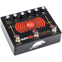 Sunn O))) Life Pedal V3 is a distortion with a blendable analog octave up and a booster combined in one compact package. The “Amplitude” side is faithfully modeled after the classic “White Face” distortion unit, using modern, reliable components to last a lifetime. The only modifications made to the original circuit are in the clipping section. The traditional circuit uses a single pair of silicon diodes for a tight, compressed crunch. The Sunn O))) Life Pedal V3 introduces two additional clipping options to better adapt to different rigs. The first position is no diodes to allow for full, grinding Op Amp assault at maximum volume. The second position utilizes two silicon diodes and one LED in an asymmetrical clipping configuration. This delivers a slightly compressed and smooth crunch, similar to a valve amplifier. The last position is the stock double silicon diode configuration which provides that classic tone you know and love.