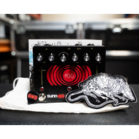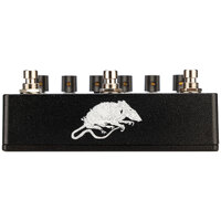 An octave fuzz inspired by the Shin-Ei FY2 & FY6 units leads the circuit into a brutal big box rodent inspired distortion, recreated with the best components, and including a three-way clipping switch (op Amp, Asymmetric & Symmetric). Second stage is a purely clean boost to further overdrive the preamp tubes of your vintage system into -scaped harmonics, and feedback overtone bliss.