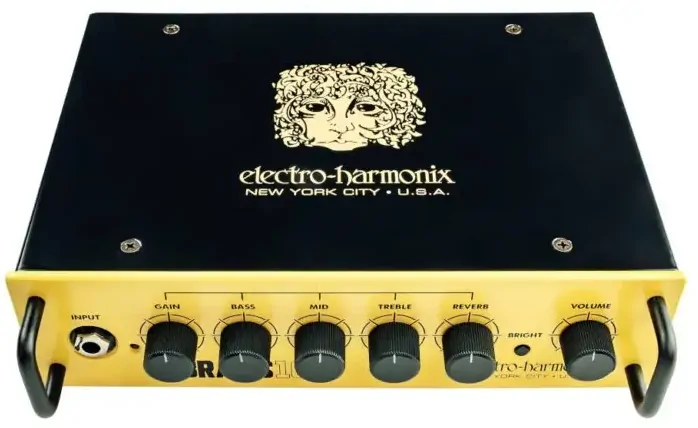 The Electro-Harmonix ABRAMS100 is a guitar amplifier boasting a full 100 watts in a compact head chassis that weighs in at a mere 2.5lbs. Designed with headroom in mind, the amp’s tone is clean with character. Turning the gain up not only increases volume but overall harmonic sweetness with only a touch of breakup. Perfect for pedal and modeler users, the ABRAMS100 produces everything from a whisper to a roar.