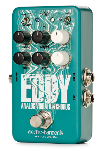 - Envelope and EXP pedal control over modulation rate and depth expand the versatility of the Eddy’s classic sounds