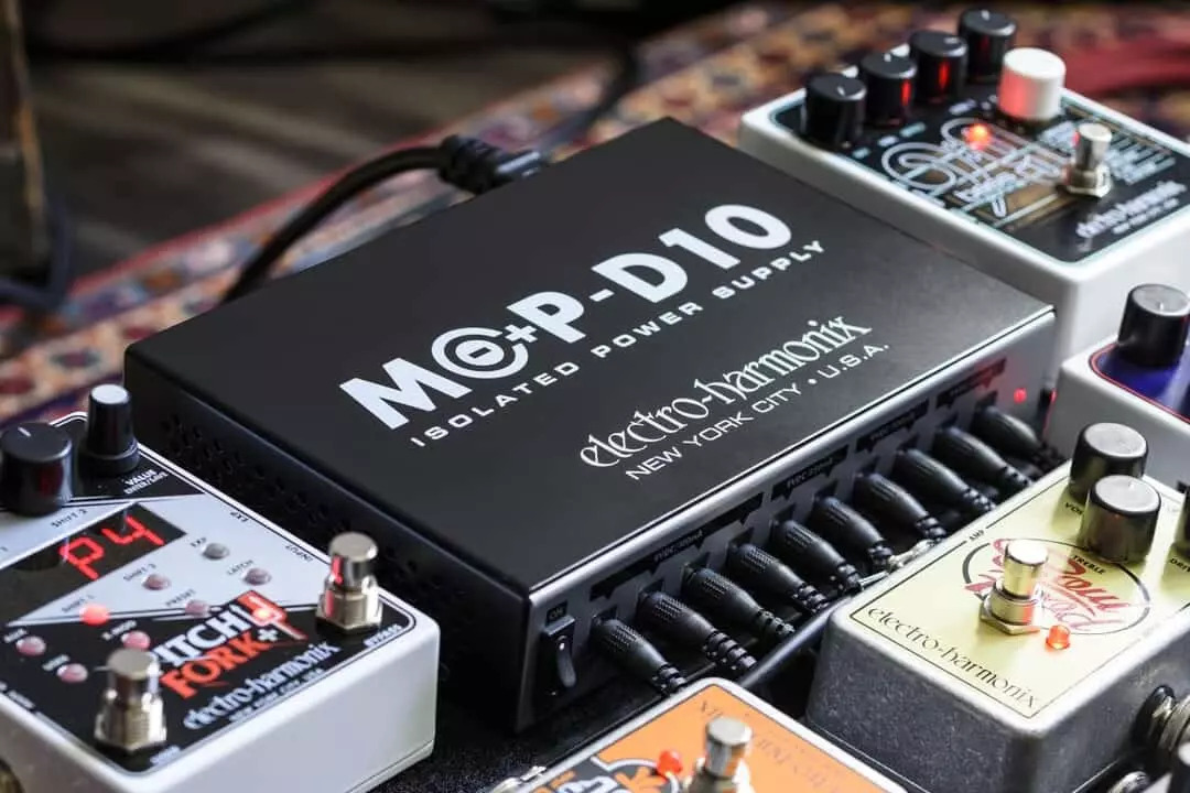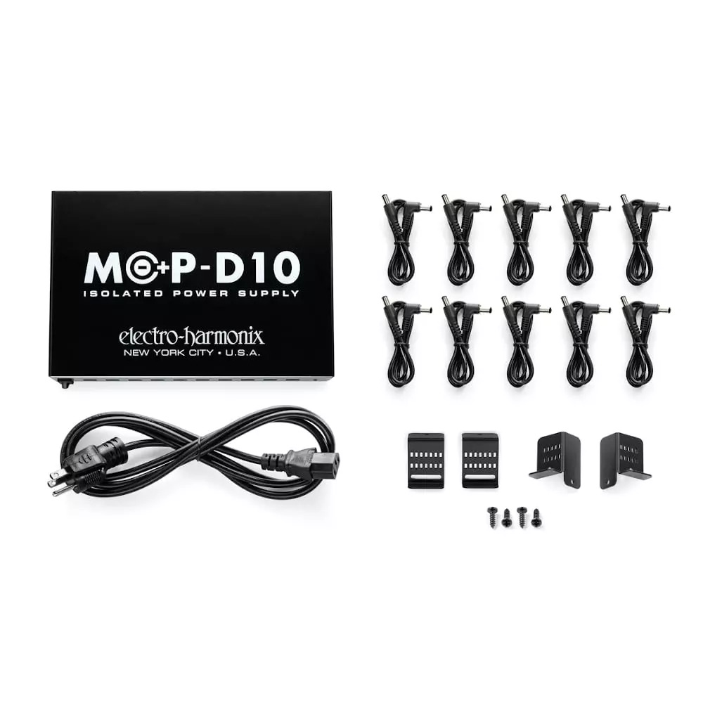 The MOP-D10 is a multi-output power source that was developed by EHX engineers to provide a player with noise-free pedal operation. It features ten isolated 9VDC outputs that handle the most popular power requirements: 4x100mA, 2x250mA, 2x300mA and 2x400mA.