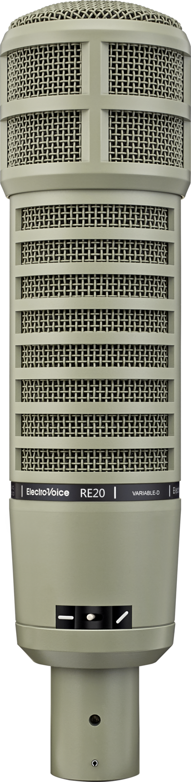 The Electro-Voice RE20 is a professional-quality dynamic cardioid microphone created specially for recording, broadcast and sound-reinforcement applications requiring essentially flat response over a very wide frequency range.