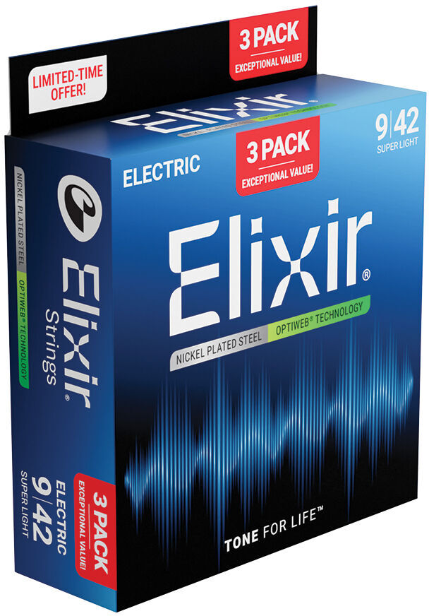 Elixir® Electric Nickel Plated Steel Strings with OPTIWEB® Coating give you the performance of a natural string — that crisp tone, natural feel and playable grip you know and love—without sacrificing the signature long-lasting tone life of Elixir Strings.