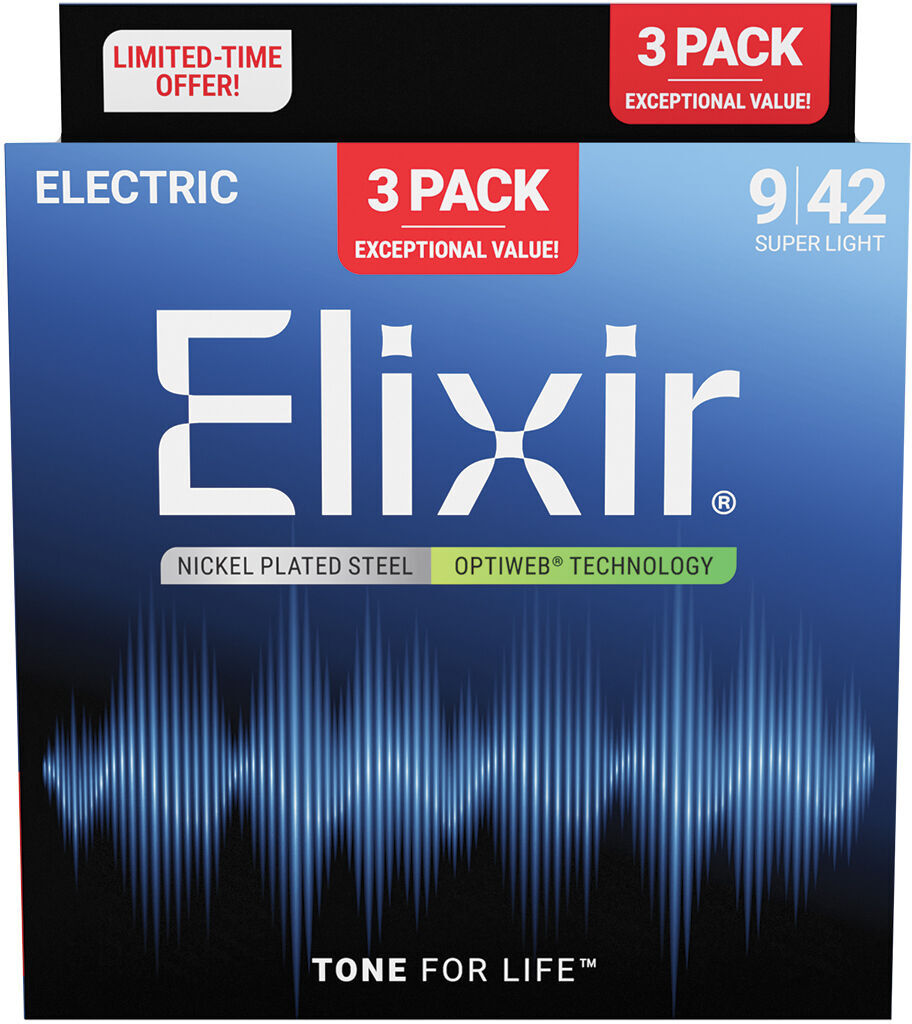 Elixir Nickel Plated Optiweb 9-42 - 3 Pack