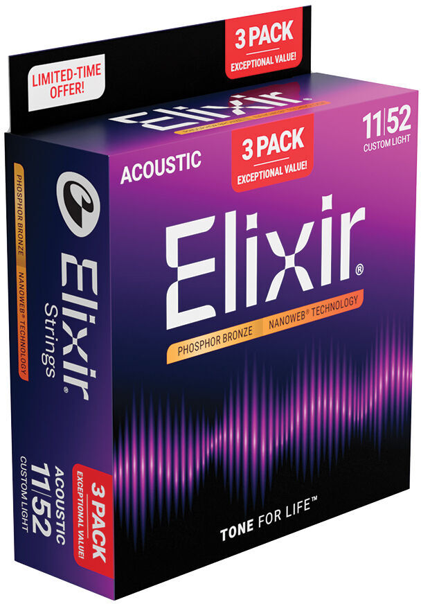 Elixir Phosphor Bronze Nanoweb 11-52 - 3 Pack
