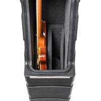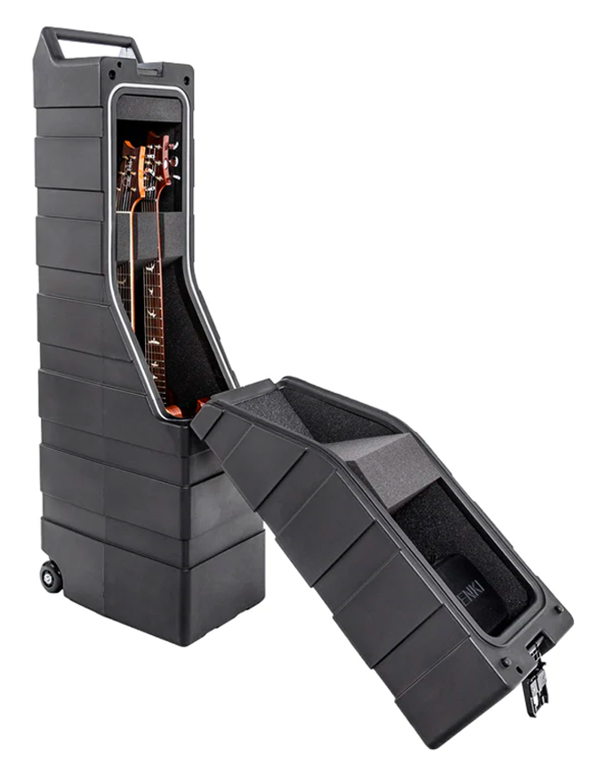 The ENKI AMG-2 Guitar Case is a revolutionary 2 electric guitar case offering solid airline-safe protection and travel convenience for touring musicians. Most touring guitar players are carrying multiple guitars and are in need of a case offering a higher level of protection with the ability to easily roll the case into the venue. To keep your babies safe, the ENKI AMG-2 Guitar Case is constructed with an incredibly tough lightweight Roto-Molded Polyethylene shell encasing a luxurious 2 guitar EVA foam insert. The AMG-2 Guitar Case is designed to hold most body styles of electric guitars with a body width up to 13 3/8” or 340mm. Guitars can be accessed either horizontally or vertically with the use of a single latch. In addition to delivering superior protection, the AMG-2 Guitar Case doubles as a guitar rack when stood vertically – perfect for the stage!