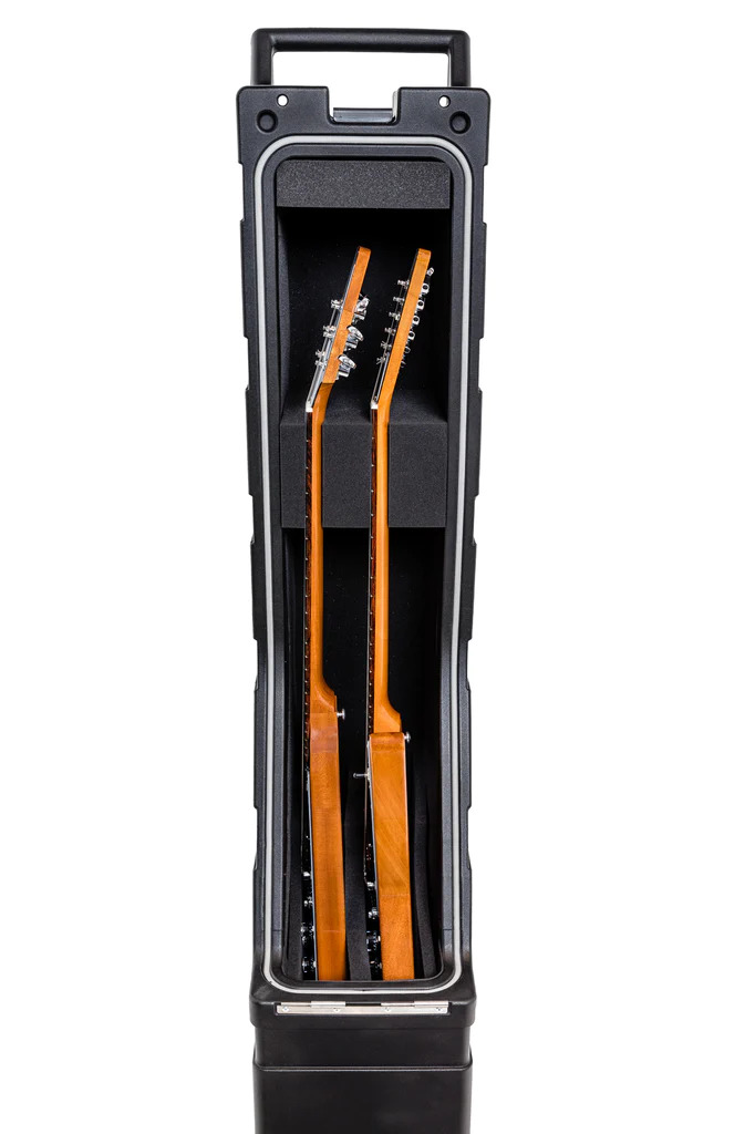 The ENKI AMG-2 XL Case is the latest edition to the ENKI AMG-2 Series Cases, able to hold 2 large bodied guitars like Gibson 335s. Like the ENKI AMG-2 Guitar Case, the ENKI AMG-2 XL Case is built with an extremely tough lightweight Roto-Molded Polyethylene Shell and a luxurious EVA foam insert providing excellent impact resistance and travel convenience. The ENKI AMG-2 XL Case is the ultimate road case for touring guitar players, on and off the stage.