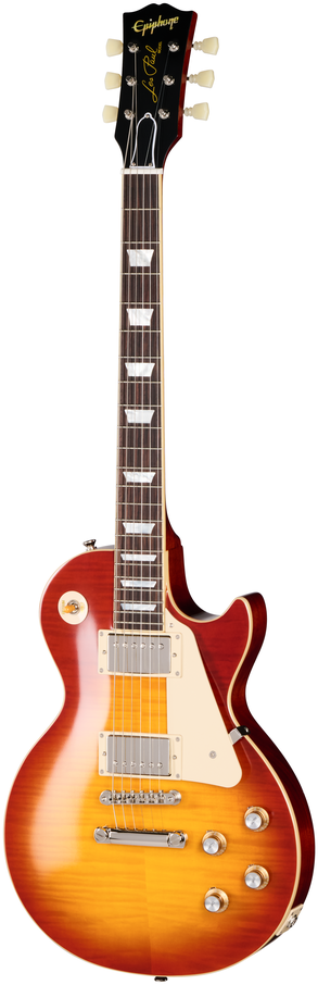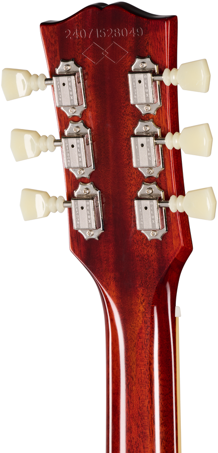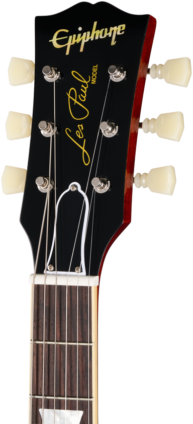 The Vintage Gloss finish gives the guitar a vintage appearance without looking overly aged and is nicely complimented by the nickel hardware, including the Epiphone Deluxe “Double Ring” Keystone button tuners. A Brown hardshell case with Inspired by Gibson Custom graphics and a pink plush-lined interior is also included. This is the perfect Les Paul for players who love the vintage appeal of the classic 1959 Les Paul Standard but who want a more comfortable neck profile.