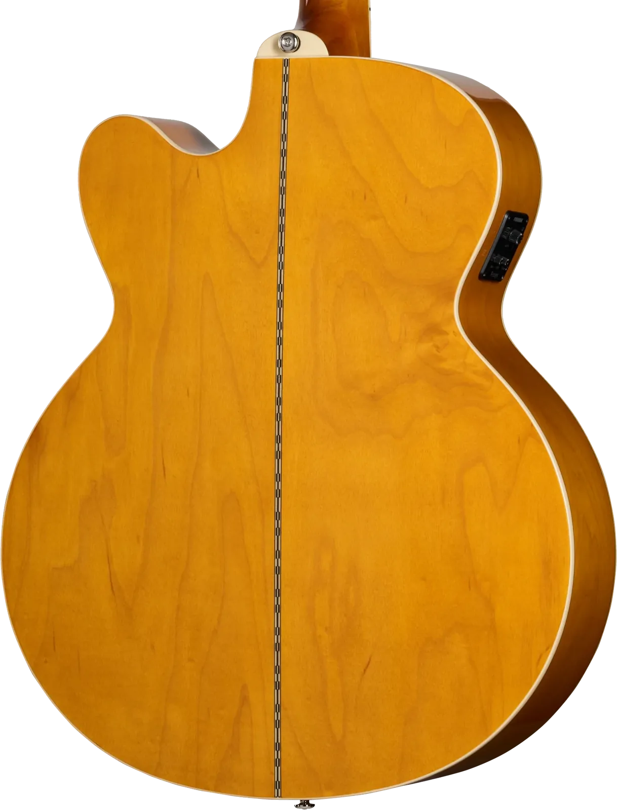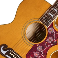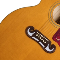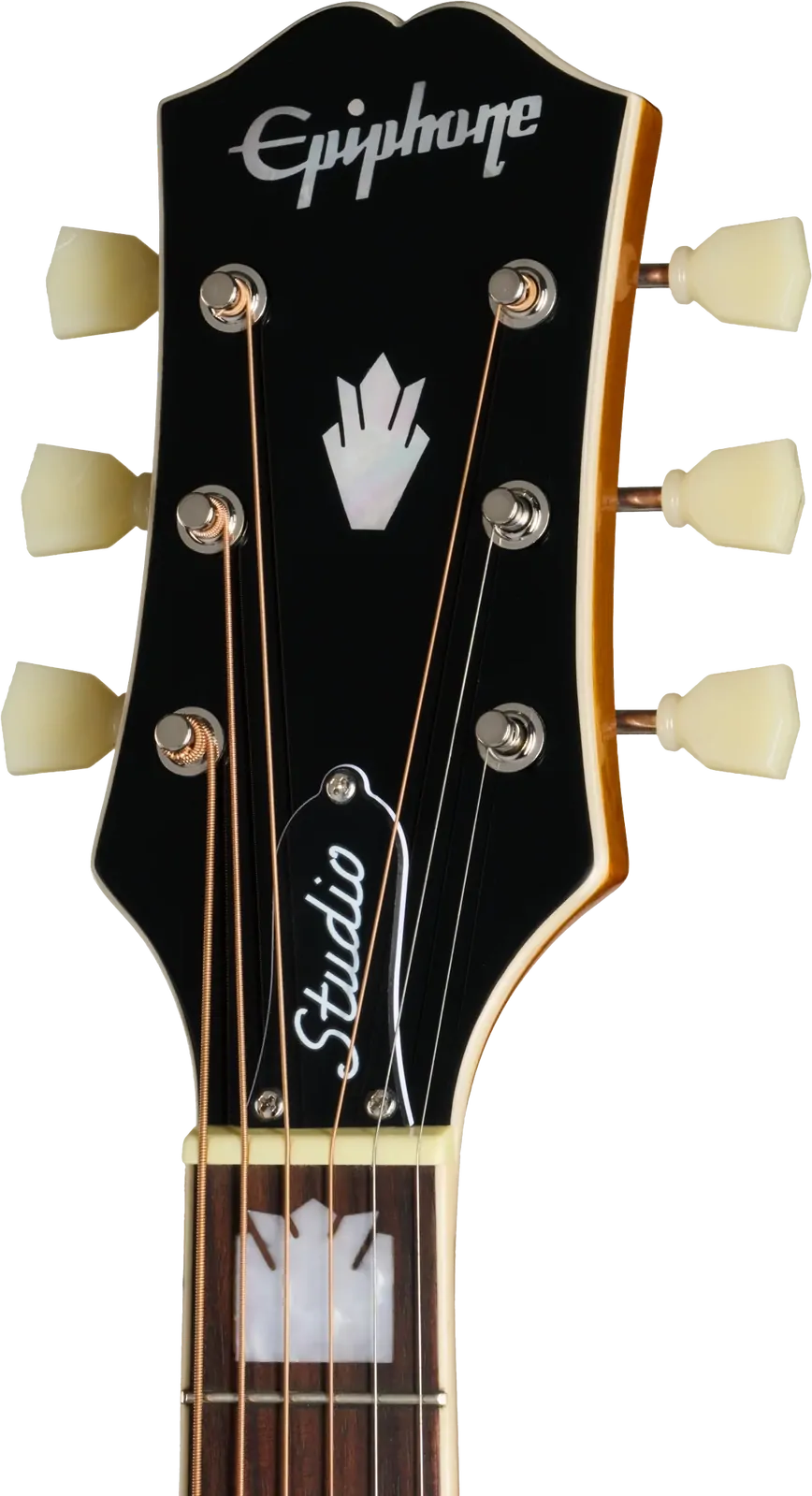 We also included other features that give the J-200 Studio EC even more vintage-style visual pizazz, including an iconic J-200 style tortoise shell-colored pickguard with classic two-color J-200 graphics, Epiphone Deluxe tuners with Keystone buttons, and a bound 60s Kalamazoo-style headstock with the Epiphone logo and Gibson Crown proudly displayed in mother of pearl. The J-200 Studio EC comes with Fishman® electronics, including an S-Core under-saddle pickup and Fishman Presys™ II preamp with side-mounted volume, bass, treble, and phase controls. It also has a convenient built-in electronic tuner that makes tuning up quick and easy. The Epiphone J-200 Studio EC has a gloss finish and is offered in two vintage-inspired colors—Natural and Vintage Sunburst. Both right-handed and left-handed versions are available. A standard gig bag is also included.