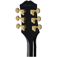It features an all-mahogany body, a mahogany neck with a refined Modern Medium C neck profile, an ebony fretboard with pearloid block inlays and medium jumbo frets, gold hardware, including a gold Epiphone LockTone™ Tune-O-Matic™ bridge and LockTone Stop Bar tailpiece, a pair of Epiphone’s new Probucker™ Custom humbucker™ pickups, which are based on Gibson Custom’s Custombucker humbucking pickups, and a larger Custom split-diamond inlay on the headstock.