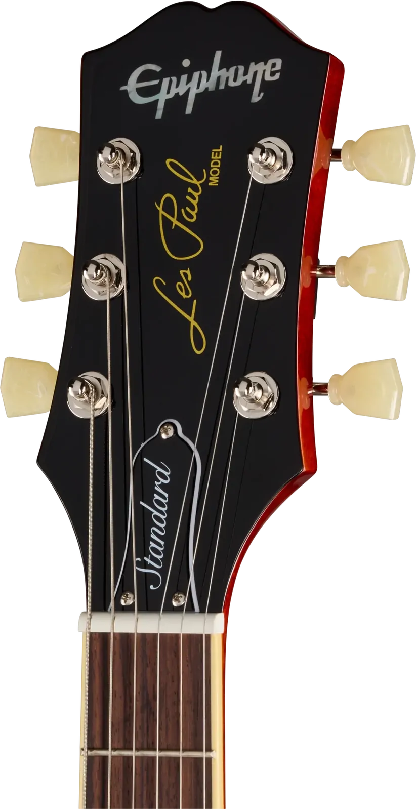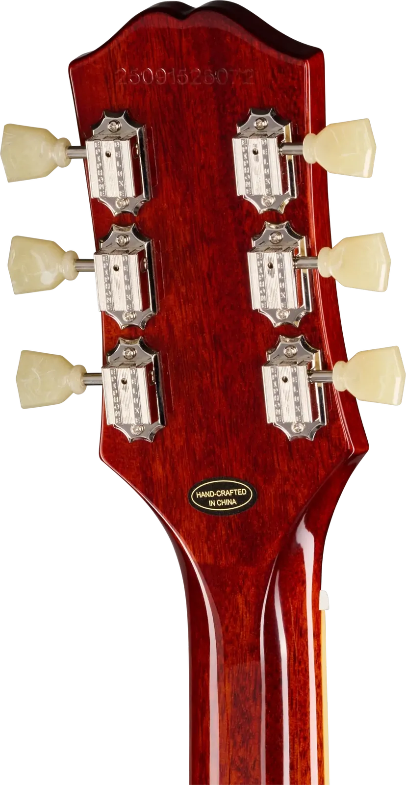 Headstock Inlay: Epiphone Logo in Mother of Pearl, Les Paul Model in Gold Silkscreen