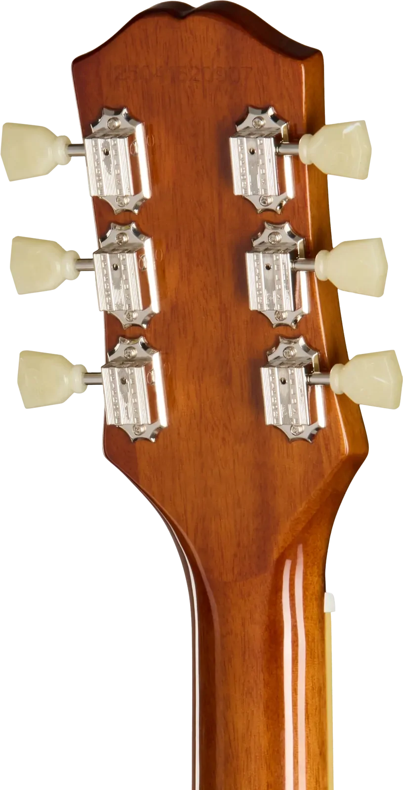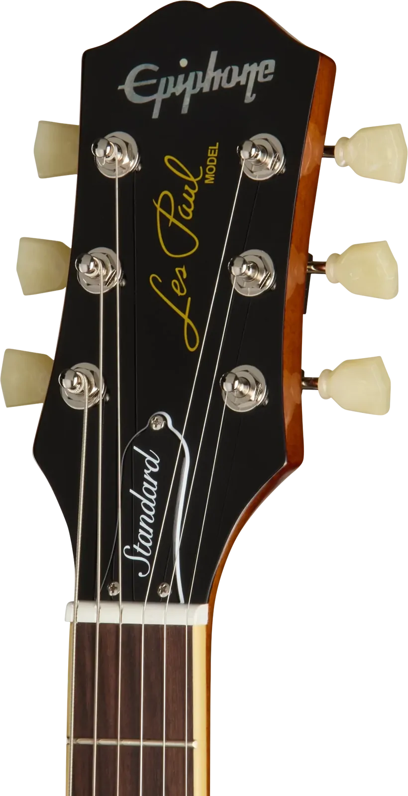 Headstock Inlay: Epiphone Logo in Mother of Pearl, Les Paul Model in Gold Silkscreen